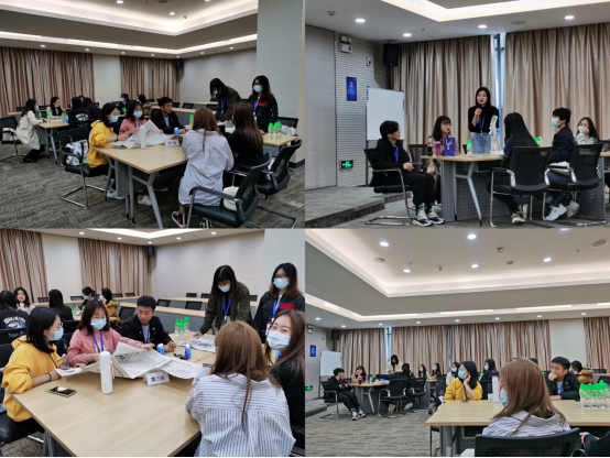 最后同学们进行了精彩的展示和汇报,蓝月亮公司的职员根据同学们在无领导小组中小组整体的表现和最终的成果给出了独到的点评,他们强调了“人际敏感度”、角色分工以及团队合作的重要性。接着王名利根据自己作为校招负责人的经验从面试的特点、流程、题目类型、角色剖析和考核的内容五大方面,向同学们细致地讲解和分析了无领导小组面试中的技巧,并给予了面试相关的一些建议。同学们也提出了自己感兴趣的职场问题,获得了很好的解答,同学都感到受益匪浅。