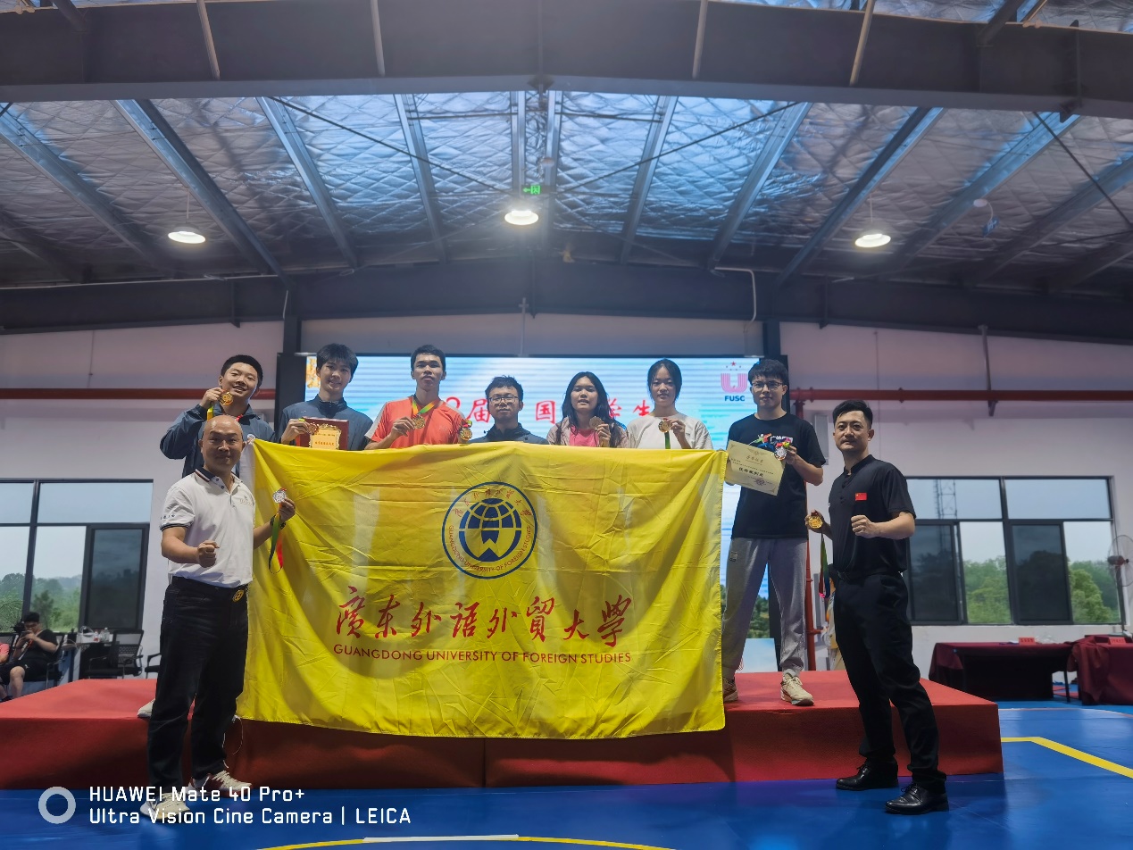 广外长短兵队领队为李旭武,教练员为余中、赵想想。在长兵对抗赛中,我校长短兵队队长卢铭洛过五关斩六将,率先斩获首金,获得男子甲A组78公斤级冠军,队员陈楷桐获男子甲A组67公斤第五名。在短兵对抗赛中,李小研同学不畏强敌,越战越勇,拿下短兵甲A组59公斤级冠军,队员夏君玲、林宛姿分别获女子甲A组74公斤级以上第三名与女子甲A组47公斤第五名,队员刘家诚和苏晓扬分别获得男子甲A组78公斤第五名和甲A组84公斤级第五名。