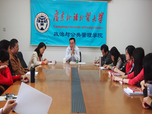 2013年4月3日下午两点半,政管学院关于两会焦点报告交流会在院系办公楼426顺利举行,全国政协委员、我校副校长顾也力教授为政管学院作了精彩的两会精神交流报告。学院党委书记范静静、学院党委副书记邵兵、院长彭未名以及教工党支部书记、系主任和辅导员等参加了本次交流会。会议由范静静书记主持。